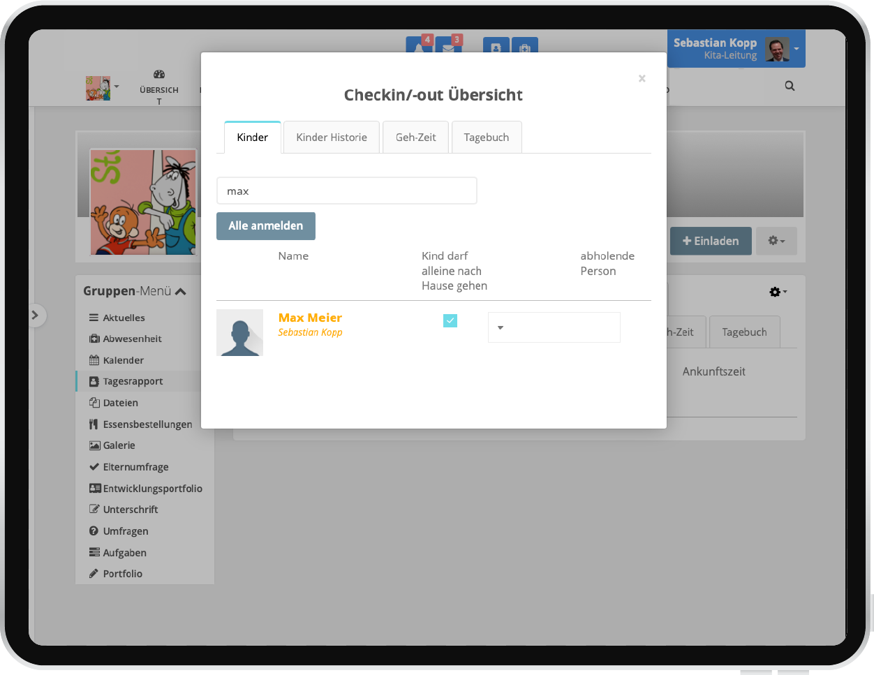 Kinder beim Kommen ein- und beim Gehen auschecken